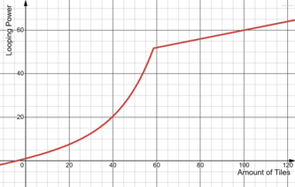 The recommended loop length is 28-30 tiles long, as it harnesses the exponential factor of looping before the power caps if you loop once. You could create more compact systems if the loop amount is higher, but this could cause backups.